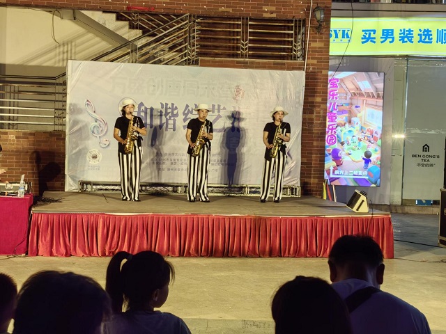 我团自2018年组建以来,在各有关部门的大力支持下,在黄清华团长的带领下,经常参加市、区、乡镇的各种公益性的演出,初步统计,有150多场。目前全团人员32人,队员是老中青相配合,其中女性团员12人,男性团员20人,有各种萨克斯演奏乐器80多把。团队训练的多重奏管乐曲目,在各种演出场次中,都获得了全体观众的一致好评。