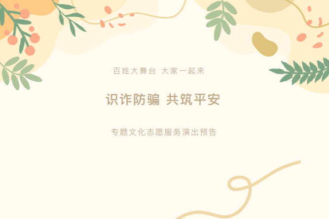 活动预告 | 百姓大舞台 大家一起来“识诈防骗,共筑平安”专题文化志愿服务演出预告