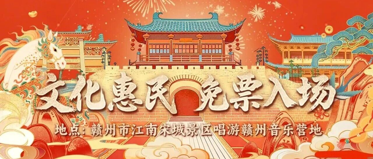 在江南宋城景区唱游赣州音乐营地,邀你共赴5天国风音乐盛宴,大年初二至初六,(2月18日—22日),(大年初三场国家公共文化云全程直播),“唱游赣州 国风盛典”,文化惠民 免票入场,我们现场见!全民狂欢 ,用旋律点燃你的假期