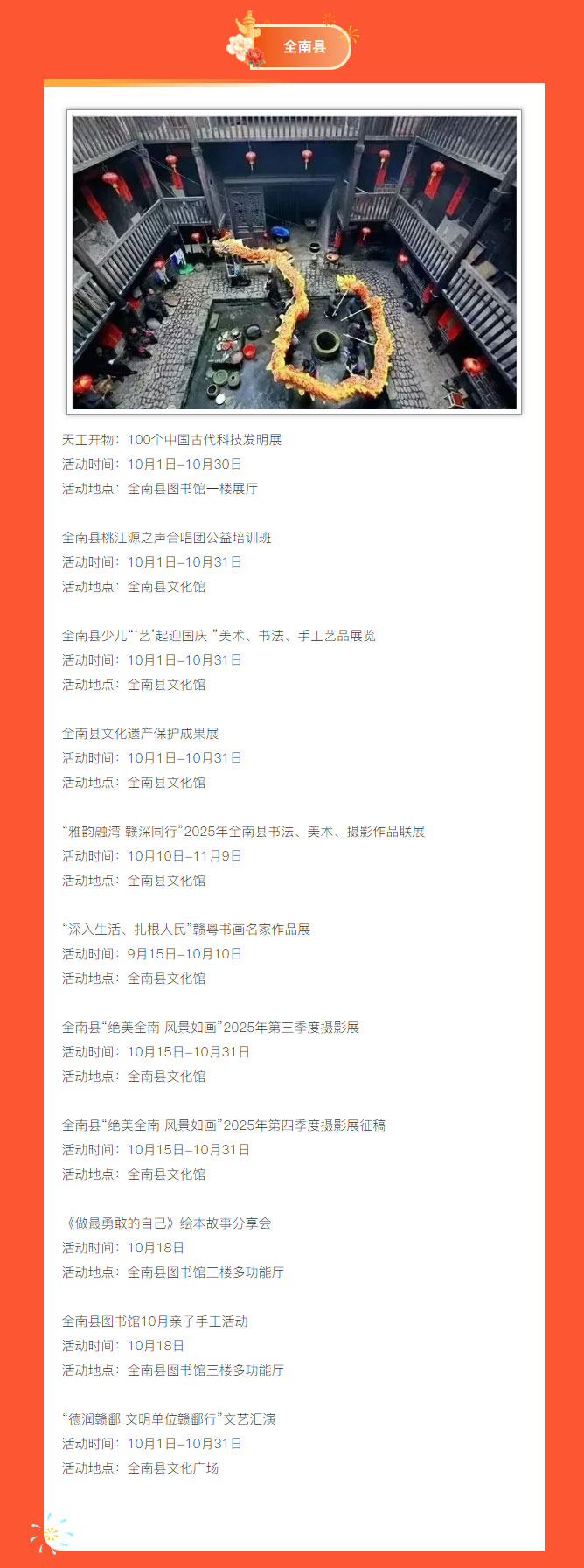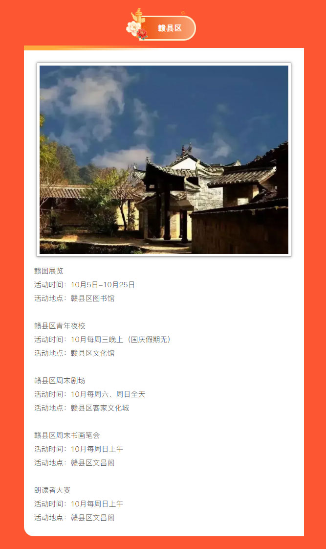 ※ 特别声明:本公众号仅用于赣州市文化馆公共文化服务及群众文化艺术普及,不用于任何商业用途。所转载文章及图片、视频、音频等版权均属原作者。如有侵权,请及时与本公众号联系。