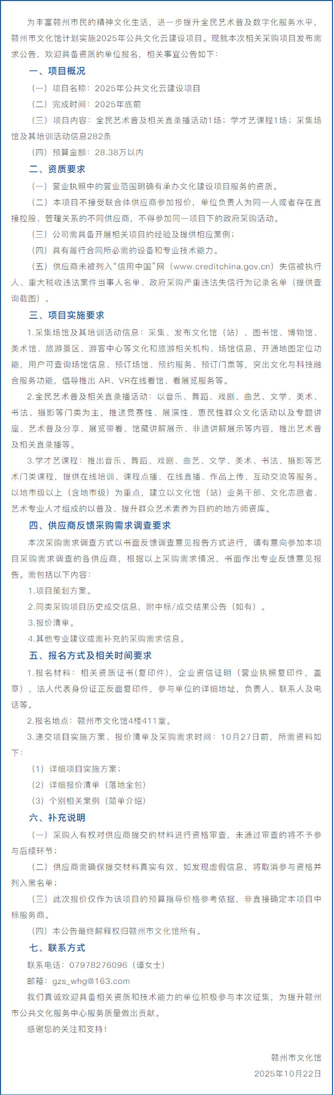 ※ 特别声明:本公众号仅用于赣州市文化馆公共文化服务及群众文化艺术普及,不用于任何商业用途。所转载文章及图片、视频、音频等版权均属原作者。如有侵权,请及时与本公众号联系。