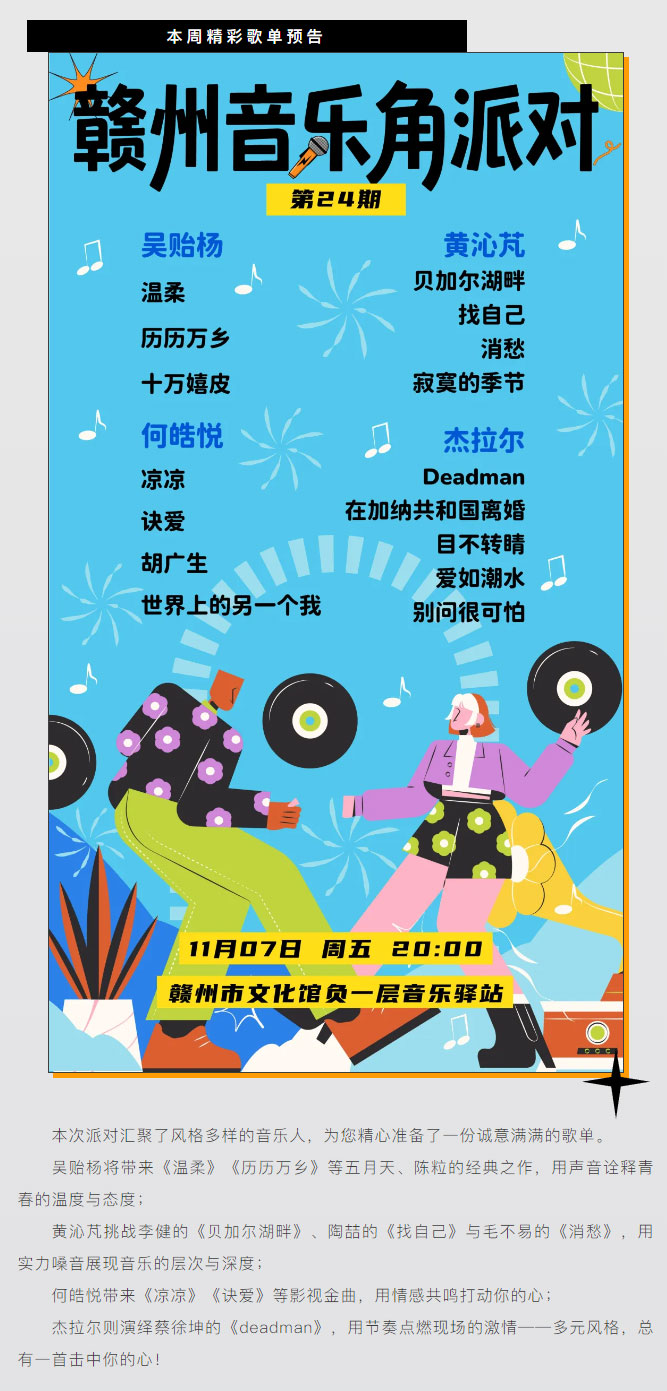 ※ 特别声明:本公众号仅用于赣州市文化馆公共文化服务及群众文化艺术普及,不用于任何商业用途。所转载文章及图片、视频、音频等版权均属原作者。如有侵权,请及时与本公众号联系。