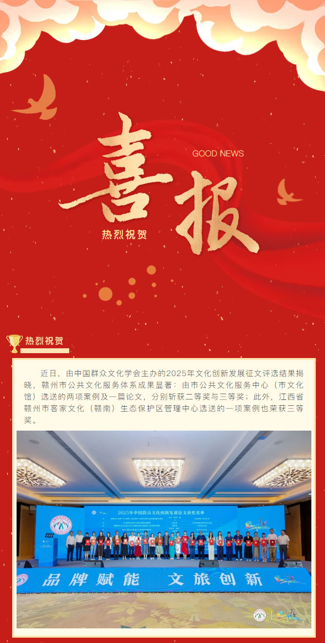 ※ 特别声明:本公众号仅用于赣州市文化馆公共文化服务及群众文化艺术普及,不用于任何商业用途。所转载文章及图片、视频、音频等版权均属原作者。如有侵权,请及时与本公众号联系。
