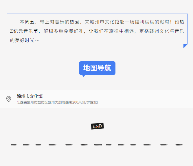 ※ 特别声明:本公众号仅用于赣州市文化馆公共文化服务及群众文化艺术普及,不用于任何商业用途。所转载文章及图片、视频、音频等版权均属原作者。如有侵权,请及时与本公众号联系。