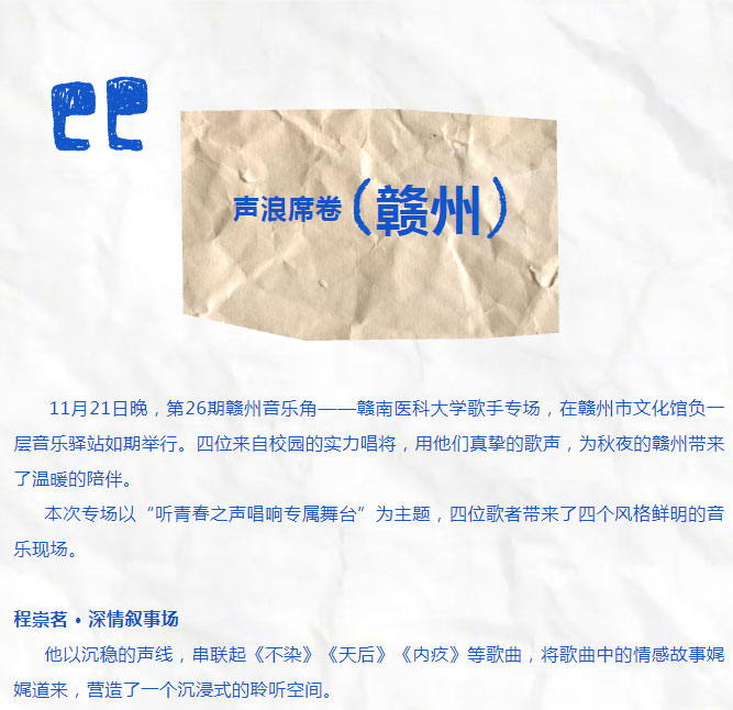 ※ 特别声明:本公众号仅用于赣州市文化馆公共文化服务及群众文化艺术普及,不用于任何商业用途。所转载文章及图片、视频、音频等版权均属原作者。如有侵权,请及时与本公众号联系。