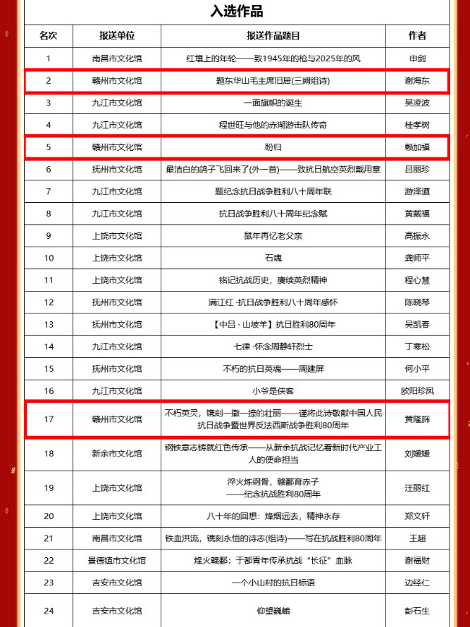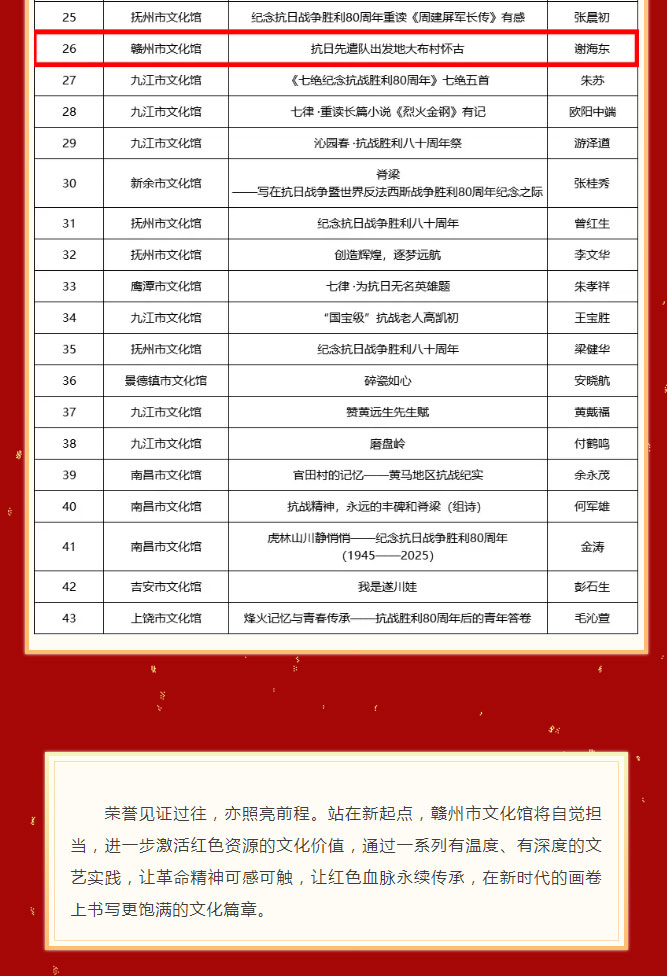※ 特别声明:本公众号仅用于赣州市文化馆公共文化服务及群众文化艺术普及,不用于任何商业用途。所转载文章及图片、视频、音频等版权均属原作者。如有侵权,请及时与本公众号联系。
