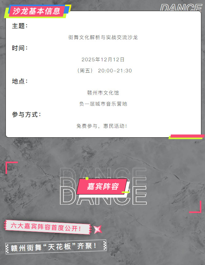 ※ 特别声明:本公众号仅用于赣州市文化馆公共文化服务及群众文化艺术普及,不用于任何商业用途。所转载文章及图片、视频、音频等版权均属原作者。如有侵权,请及时与本公众号联系。