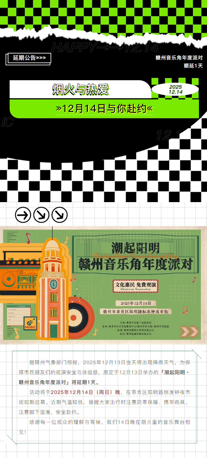 延期公告|赣州音乐角年度派对顺延1天!烟火与热爱,12月14日与你赴约~