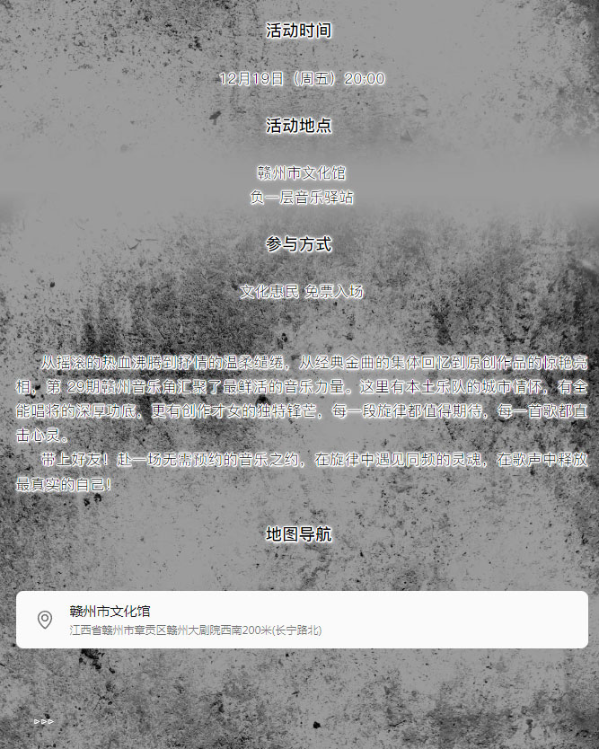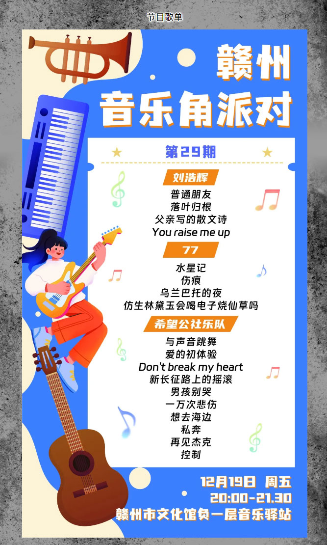 ※ 特别声明:本公众号仅用于赣州市文化馆公共文化服务及群众文化艺术普及,不用于任何商业用途。所转载文章及图片、视频、音频等版权均属原作者。如有侵权,请及时与本公众号联系。