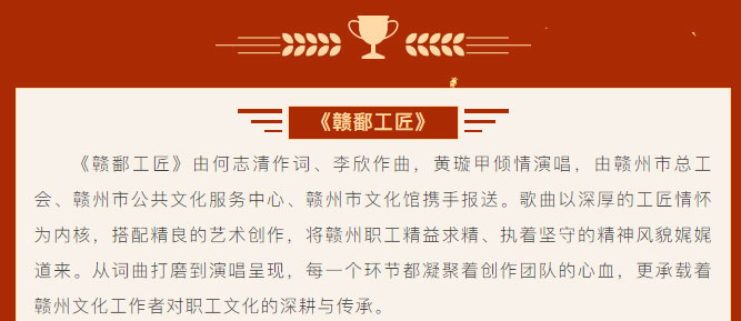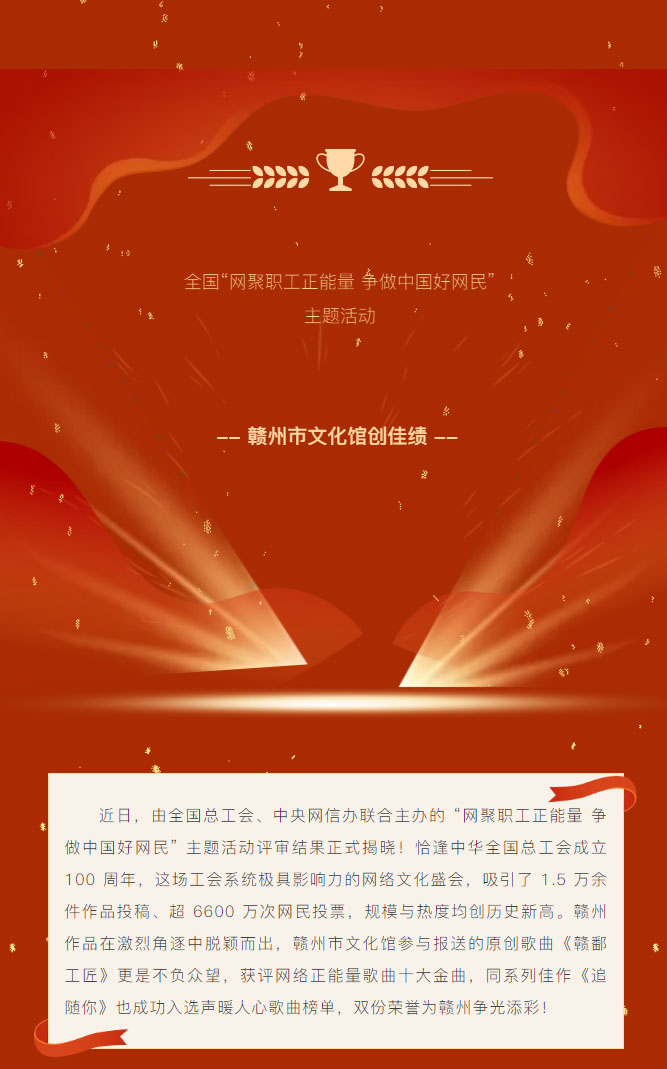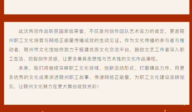 ※ 特别声明:本公众号仅用于赣州市文化馆公共文化服务及群众文化艺术普及,不用于任何商业用途。所转载文章及图片、视频、音频等版权均属原作者。如有侵权,请及时与本公众号联系。