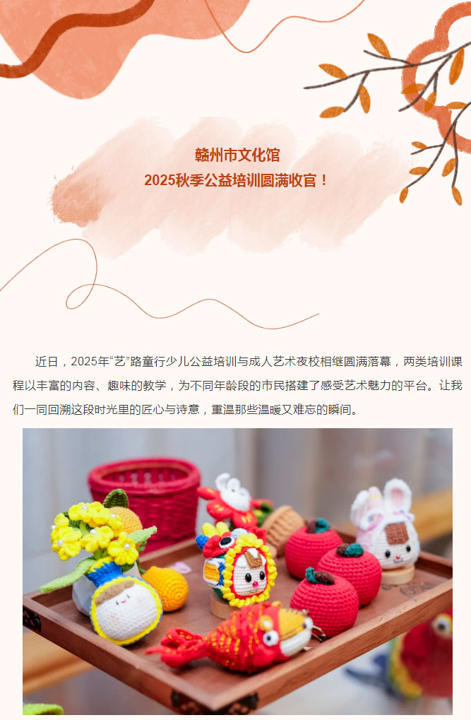 ※ 特别声明:本公众号仅用于赣州市文化馆公共文化服务及群众文化艺术普及,不用于任何商业用途。所转载文章及图片、视频、音频等版权均属原作者。如有侵权,请及时与本公众号联系。