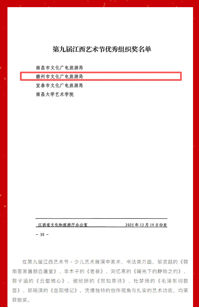 时间:2026-01-06点击量:来源:赣州市文化馆