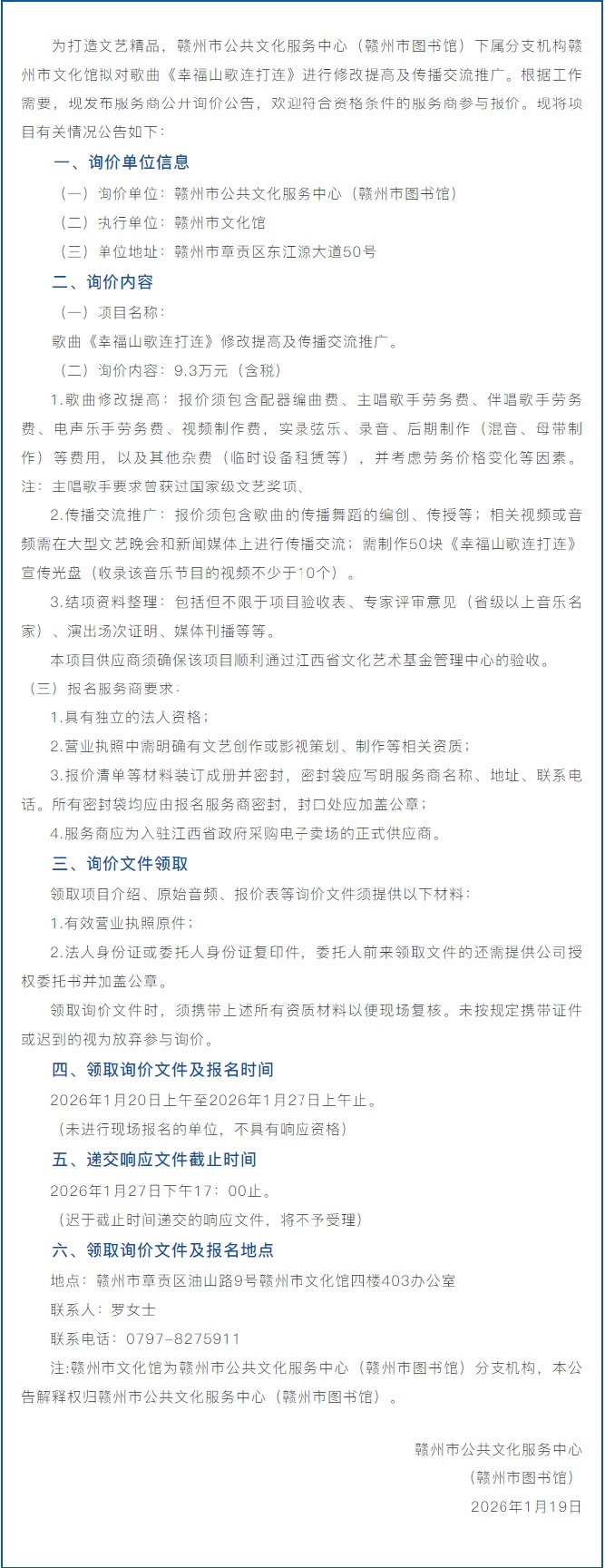 ※ 特别声明:本公众号仅用于赣州市文化馆公共文化服务及群众文化艺术普及,不用于任何商业用途。所转载文章及图片、视频、音频等版权均属原作者。如有侵权,请及时与本公众号联系。