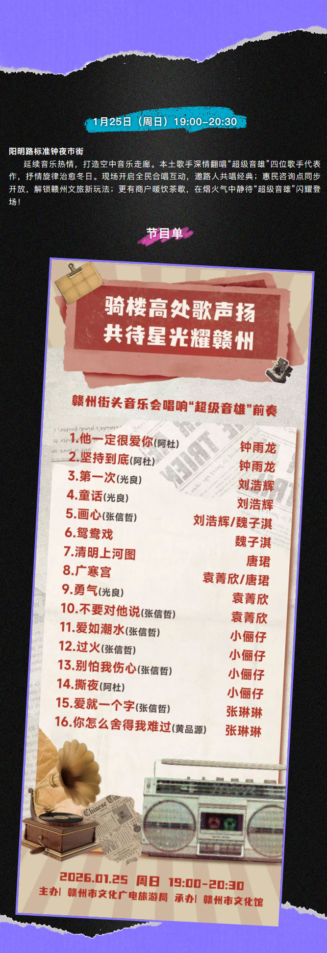 ※ 特别声明:本公众号仅用于赣州市文化馆公共文化服务及群众文化艺术普及,不用于任何商业用途。所转载文章及图片、视频、音频等版权均属原作者。如有侵权,请及时与本公众号联系。