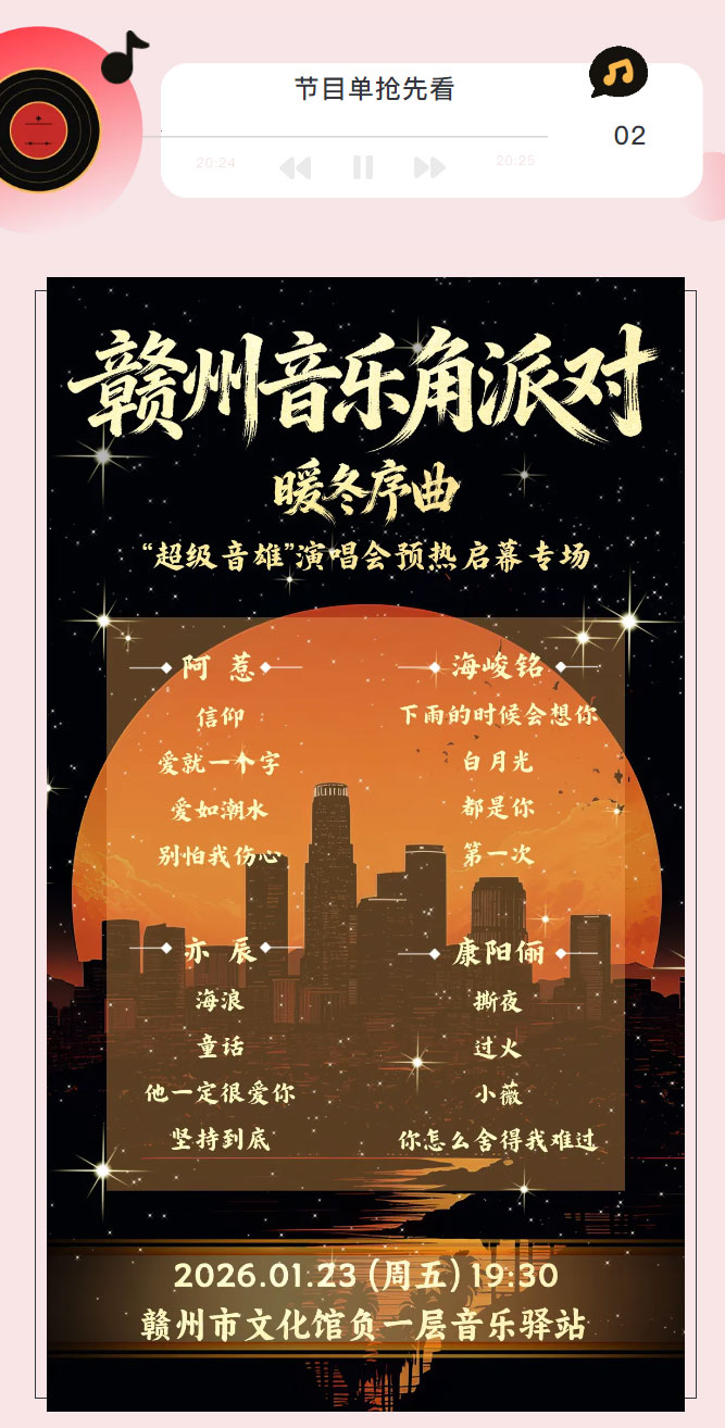 ※ 特别声明:本公众号仅用于赣州市文化馆公共文化服务及群众文化艺术普及,不用于任何商业用途。所转载文章及图片、视频、音频等版权均属原作者。如有侵权,请及时与本公众号联系。
