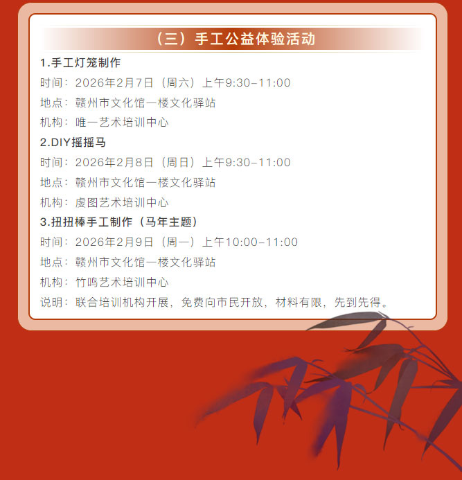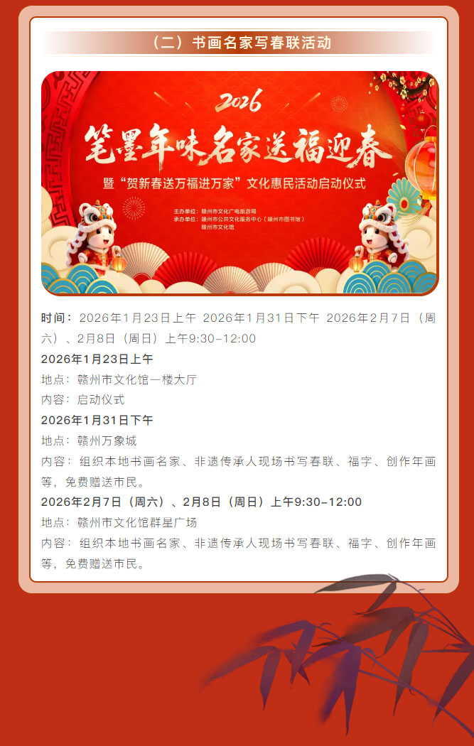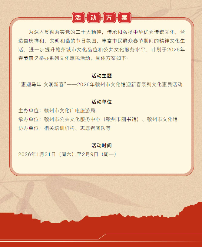 ※ 特别声明:本公众号仅用于赣州市文化馆公共文化服务及群众文化艺术普及,不用于任何商业用途。所转载文章及图片、视频、音频等版权均属原作者。如有侵权,请及时与本公众号联系。