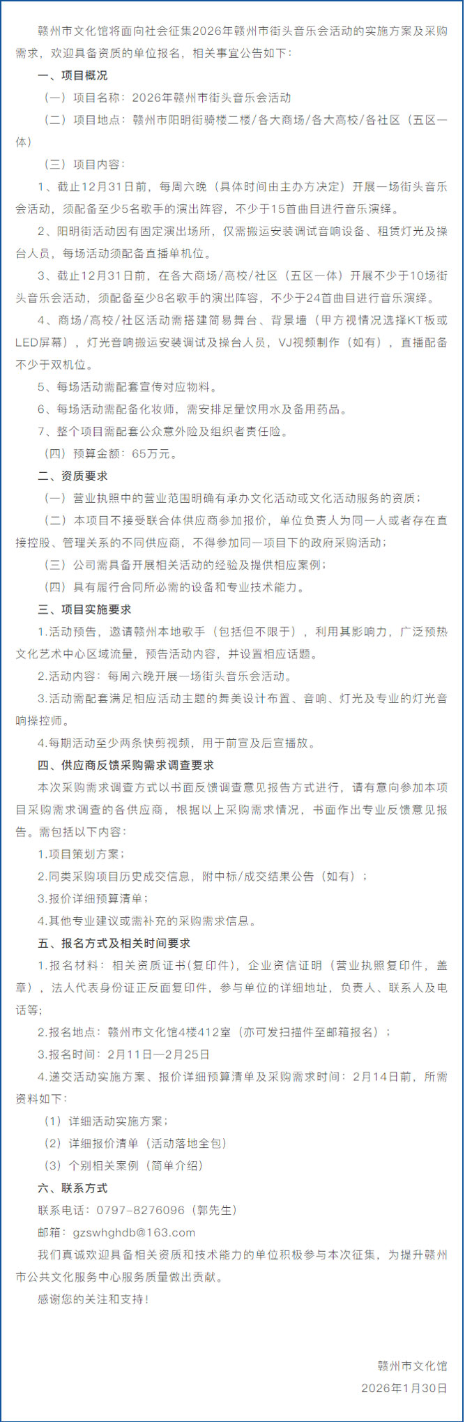 ※ 特别声明:本公众号仅用于赣州市文化馆公共文化服务及群众文化艺术普及,不用于任何商业用途。所转载文章及图片、视频、音频等版权均属原作者。如有侵权,请及时与本公众号联系。