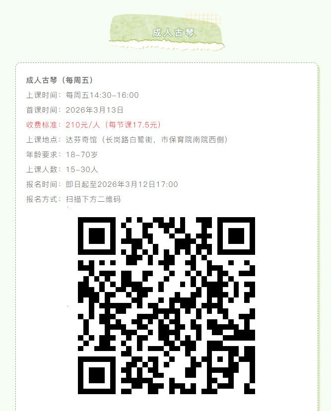 当前位置: 首页 > 文化动态 > 成人古琴普惠班,专为零基础琴友开设,新手速成班火热报名中!