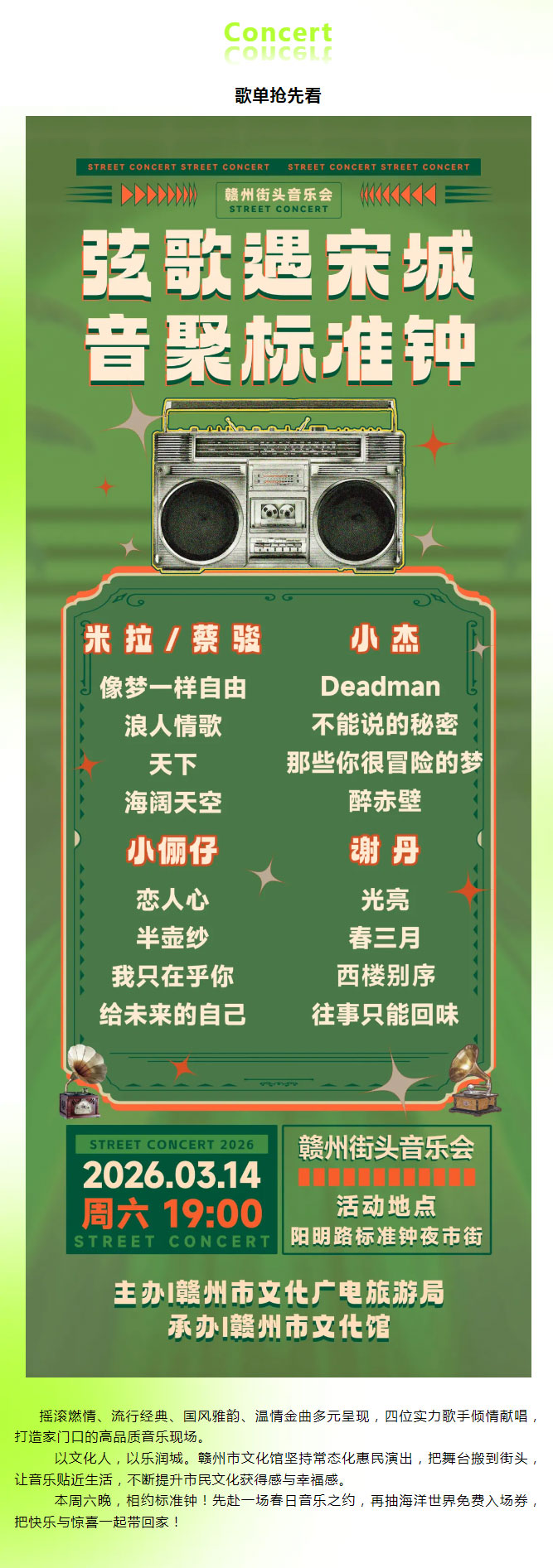 ※ 特别声明:本公众号仅用于赣州市文化馆公共文化服务及群众文化艺术普及,不用于任何商业用途。所转载文章及图片、视频、音频等版权均属原作者。如有侵权,请及时与本公众号联系。