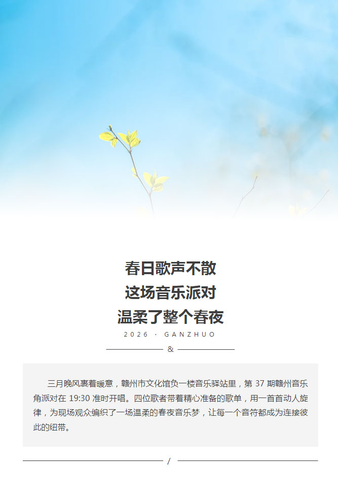 当前位置: 首页 > 文化动态 > 赣文轻骑兵|第 37 期音乐角回顾,春日歌声不散,这场音乐派对温柔了整个春夜