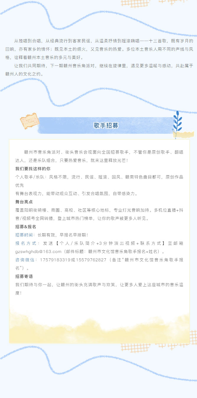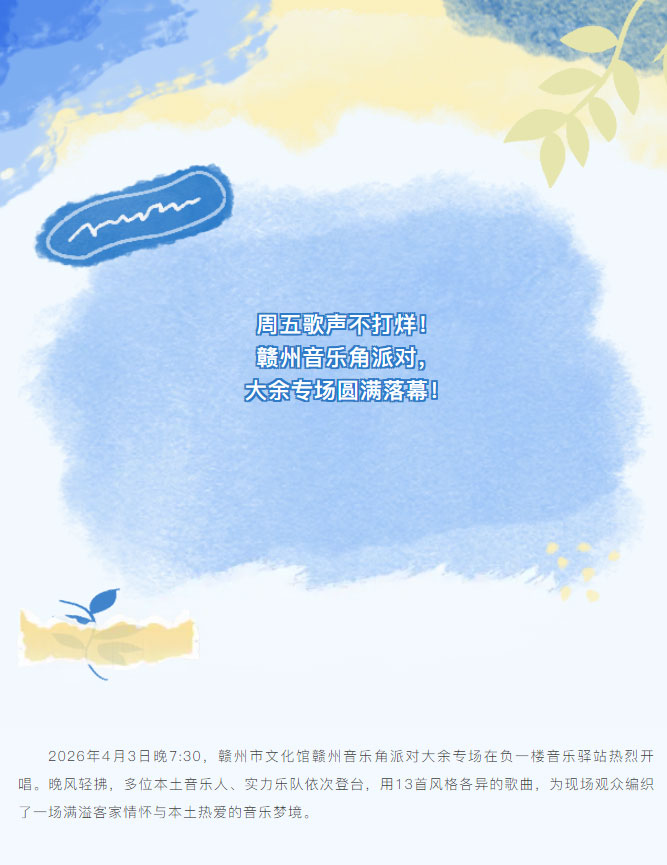 ※ 特别声明:本公众号仅用于赣州市文化馆公共文化服务及群众文化艺术普及,不用于任何商业用途。所转载文章及图片、视频、音频等版权均属原作者。如有侵权,请及时与本公众号联系。