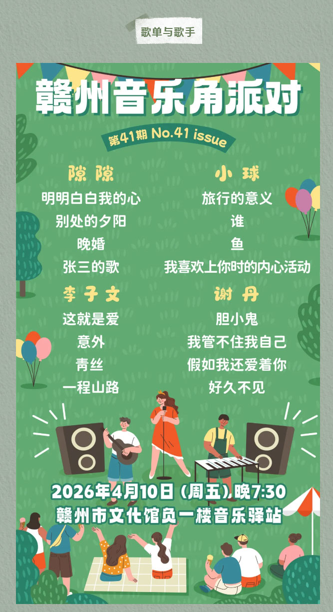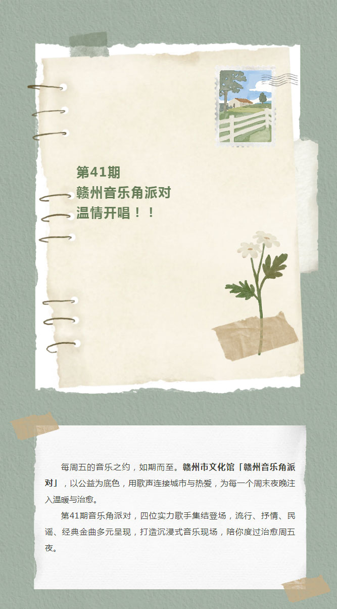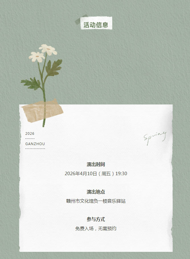 ※ 特别声明:本公众号仅用于赣州市文化馆公共文化服务及群众文化艺术普及,不用于任何商业用途。所转载文章及图片、视频、音频等版权均属原作者。如有侵权,请及时与本公众号联系。
