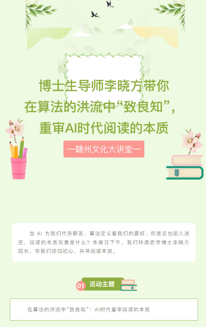 ※ 特别声明:本公众号仅用于赣州市文化馆公共文化服务及群众文化艺术普及,不用于任何商业用途。所转载文章及图片、视频、音频等版权均属原作者。如有侵权,请及时与本公众号联系。