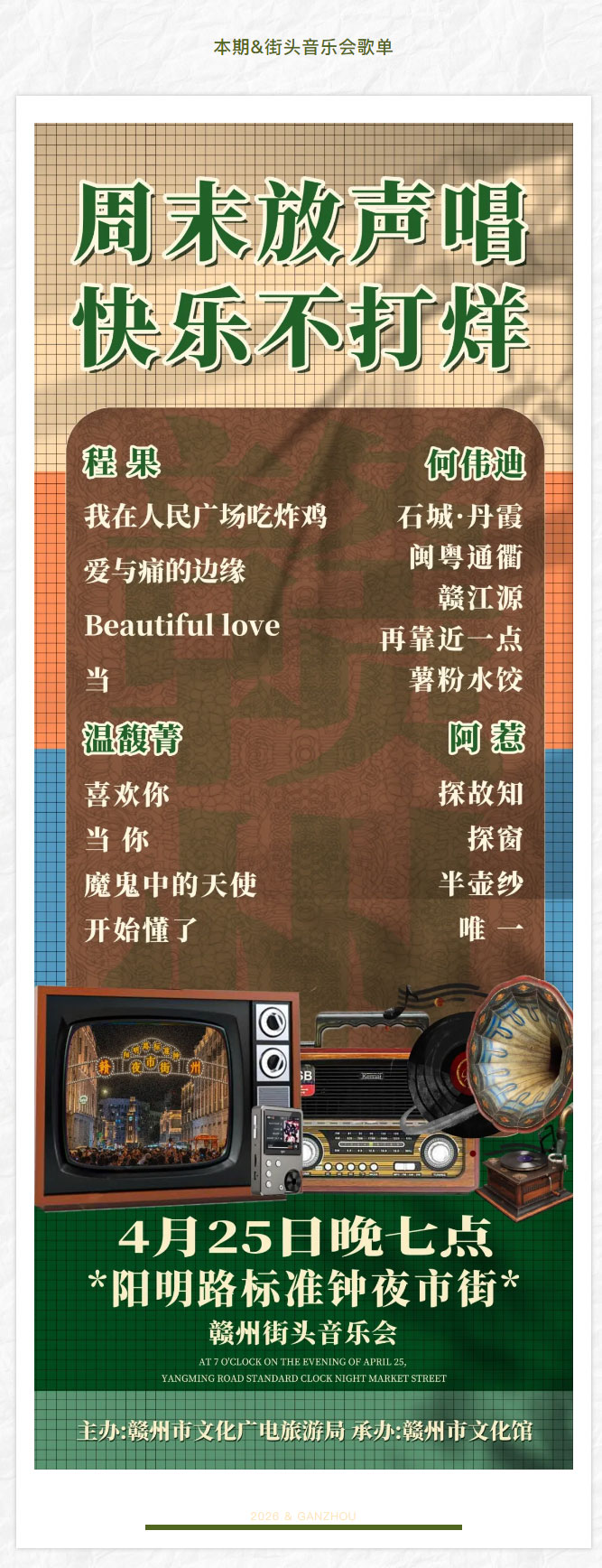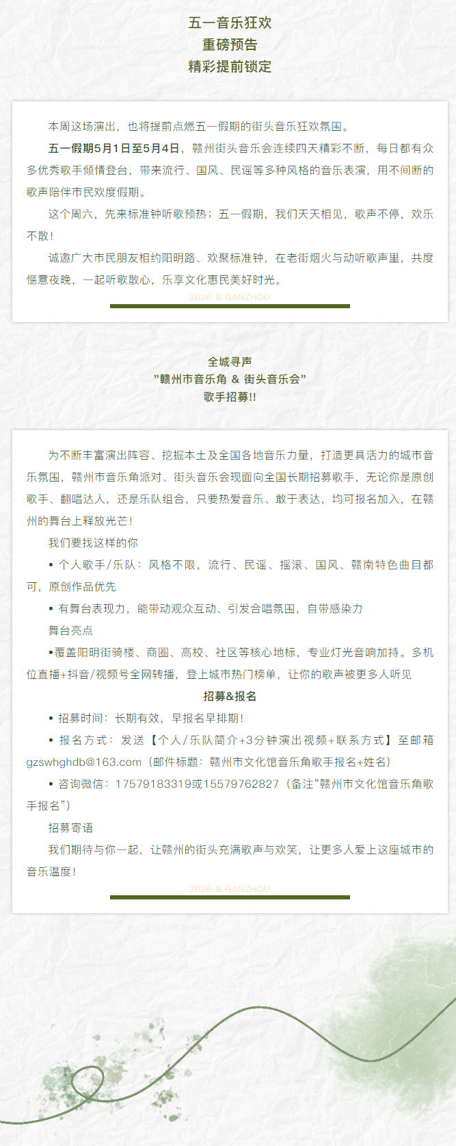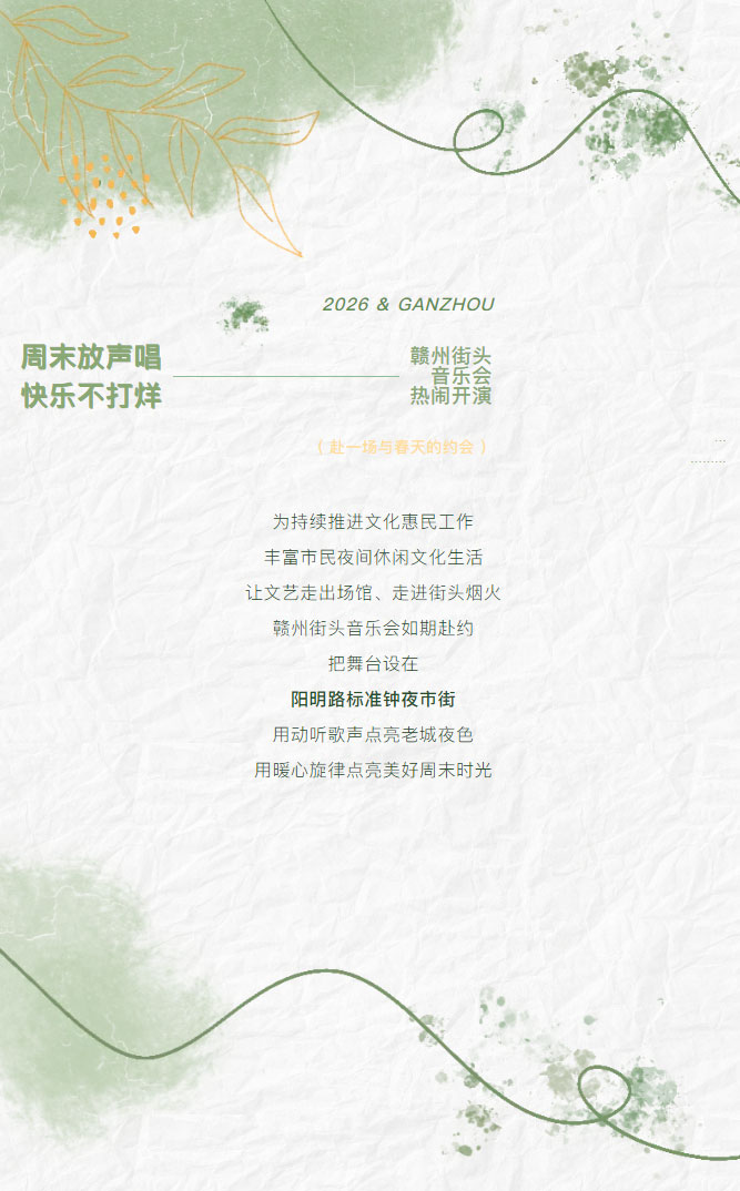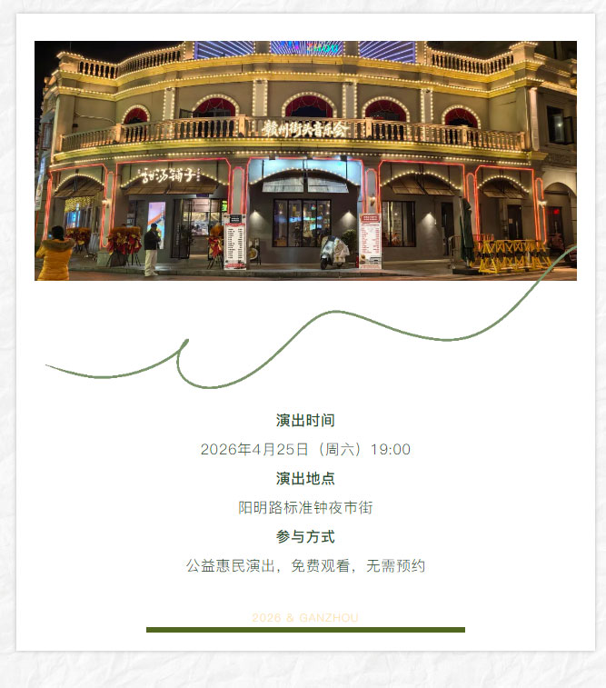 ※ 特别声明:本公众号仅用于赣州市文化馆公共文化服务及群众文化艺术普及,不用于任何商业用途。所转载文章及图片、视频、音频等版权均属原作者。如有侵权,请及时与本公众号联系。