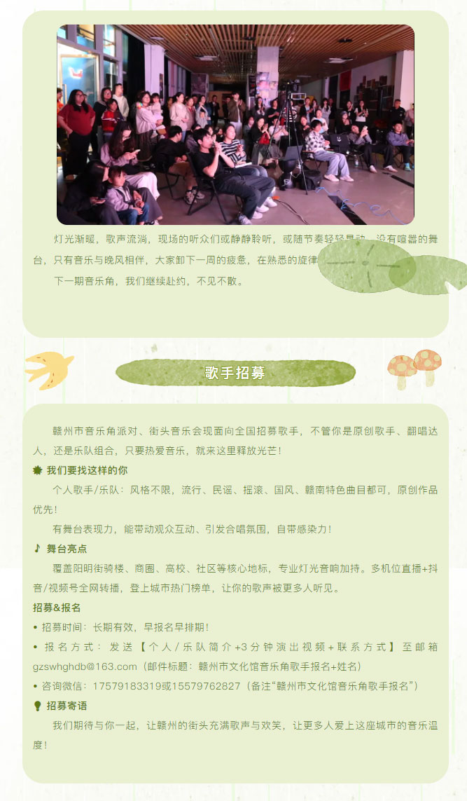 ※ 特别声明:本公众号仅用于赣州市文化馆公共文化服务及群众文化艺术普及,不用于任何商业用途。所转载文章及图片、视频、音频等版权均属原作者。如有侵权,请及时与本公众号联系。