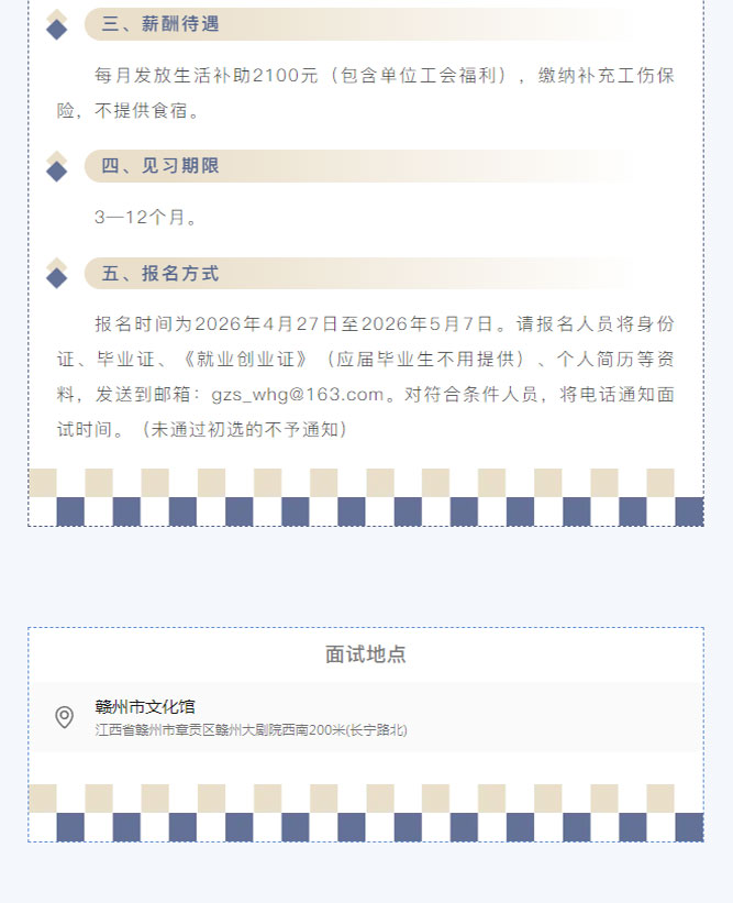 ※ 特别声明:本公众号仅用于赣州市文化馆公共文化服务及群众文化艺术普及,不用于任何商业用途。所转载文章及图片、视频、音频等版权均属原作者。如有侵权,请及时与本公众号联系。