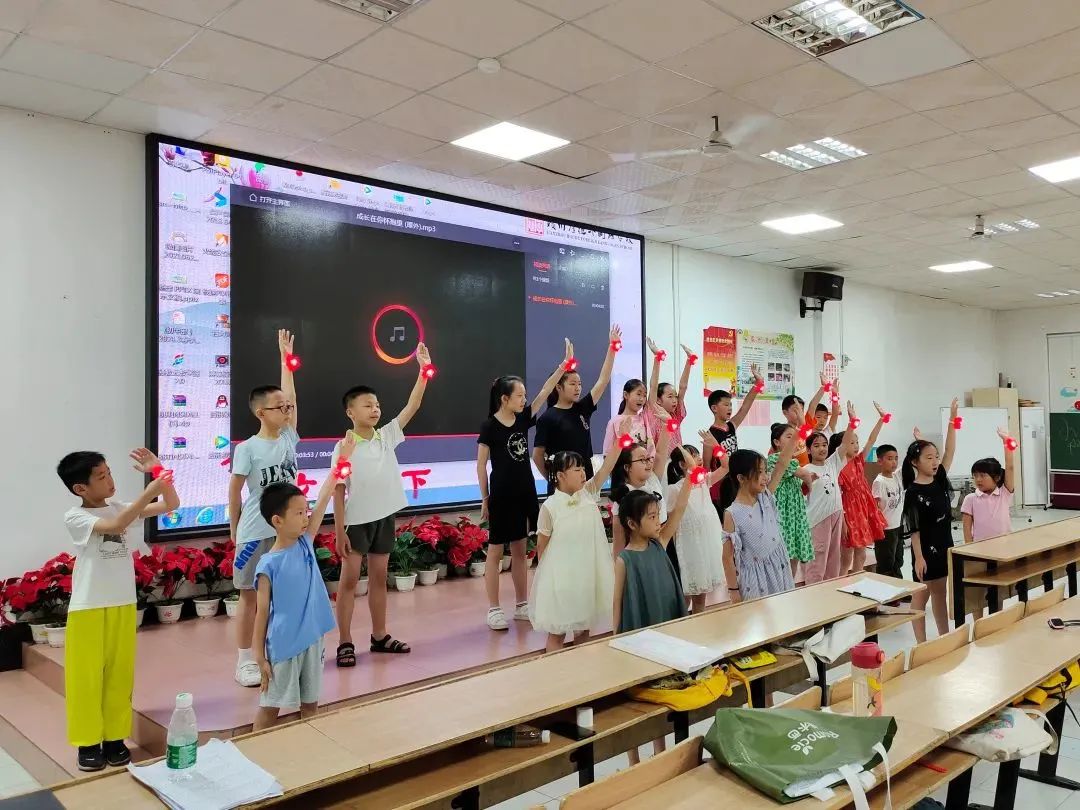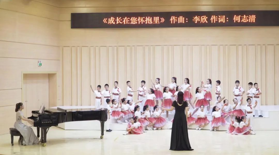 这个暑假,排练现场清脆嘹亮的歌唱声环绕四周,音符满天,倾听青春洋溢的童声演唱,肆意挥洒着只属于她们的可爱,坚持练习演唱的她们,经过了多次动作、音调、状态的调整,最终在比赛中一展风采,成绩斐然。