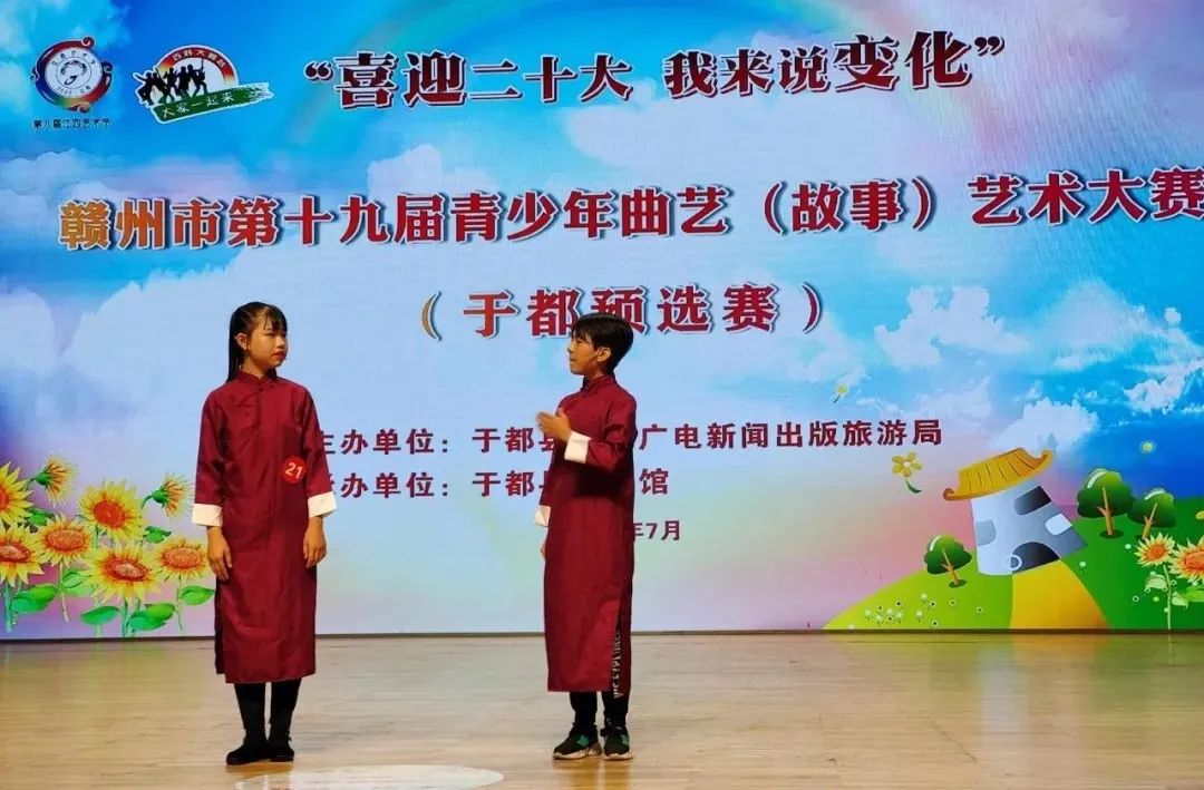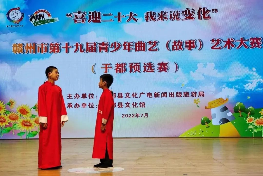 绿树阴浓夏日长, 曲苑花开别样红。为喜迎党的二十大胜利召开,传承和弘扬中华优秀传统文化,激发青少年想象力和创新意识,推动少儿艺术事业全面健康发展,7月29日,由于都县文化广电新闻出版旅游局主办,于都县文化馆承办的“喜迎二十大 我来说变化”赣州市第十九届青少年曲艺(故事)艺术大赛于都预选赛在县文化艺术中心正式拉开序幕。