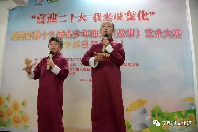 为了深入贯彻习近平新时代中国特色社会主义思想,聚焦“喜迎二十大,我来说变化”红色旅游季主题系列活动,展现青少年幸福成长的美好生活,和感恩奋进的精神风貌,促进曲艺新人培养,振兴曲艺艺术,不断推动少儿曲艺事业的发展。2022年“喜迎二十大,我来说变化”赣州市第十九届青少年曲艺(故事)比赛宁都分赛场预选赛活动成功举办。
