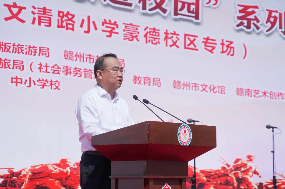 为弘扬长征精神,传承红色基因, 4月17日上午,由赣州市文广新旅局、赣州市教育局主办的“唱响新时代 奋进新征程——赣州市“长征组歌进校园”系列活动启动仪式暨首场演出,在赣州市文清路小学豪德校区成功举办。赣州市政府副秘书长温海、赣州市委教育工委副书记郭强、赣州市文广新旅局副局长夏涵涵参加启动仪式。