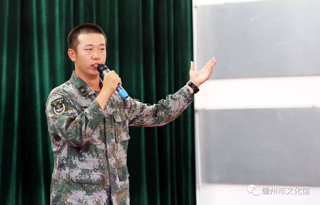 “听吧,新征程号角吹响;强军目标召唤在前方……”,当章贡区文化馆馆长陈贝走进官兵中唱响铿锵有力的《强军战歌》时,全体官兵与文化志愿者齐声合唱,同抒卫国戍边的壮志豪情。文化志愿者的拥军情与官兵的强军梦,汇成昂扬的旋律,激荡在军营内外。