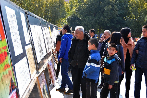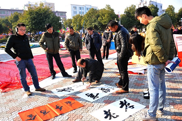 “高居宝地财兴旺 福照家门富生辉”;“内外平安好运来 合家欢乐财源进”“ 共襄中国梦 同写华夏春”过年贴春联是中国最传统的民间习俗,它寄托了人们对未来的美好希望,也深受百姓的喜爱。元月23日,县茗馨广场格外热闹,为迎接即将到来的马年新春,由上犹县文广局主办,上犹县文化馆承办,县书法协会协办的“迎新春·送祝福”义务书写春联活动及“毛泽东同志在赣南苏区”书画作品展览,上犹县文化馆特地邀请十名书法爱好者当场挥毫泼墨,书写春联送祝福,尽管正值严冬,但现场依然暖意浓浓,活动深深吸引了许多居民前来参加。居民把书写春联的长桌围的水泄不通,纷纷挑选心仪的老师现场写联句,千副春联眨眼间挑选一空,大家手捧大红春联,喜悦的心情跃上眉间。通过此次活动,不仅仅是丰富了居民的文化生活,也将中国的传统文化传播到每一个人的心中,在新年到来之际,让居民感受到了浓郁的年味,大家共度过一个祥和美好的春节!